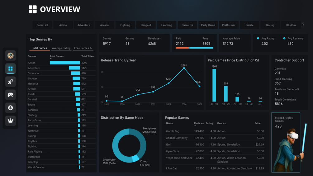 VR Game Market Intelligence Dashboard | 5900+ Meta Quest Title 2025 | Power BI