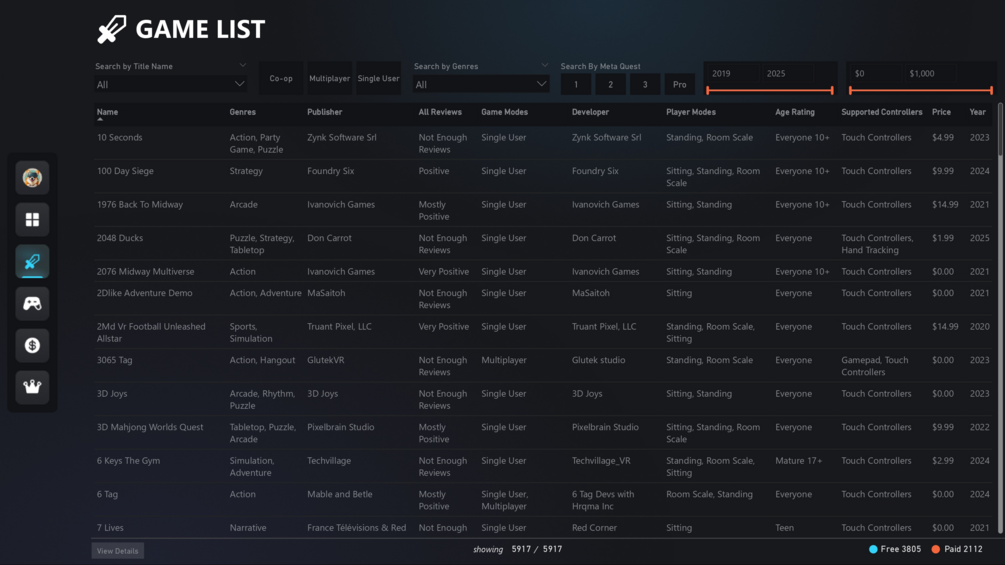 Analytical view of 5,900+ VR games listed on the Meta Quest Store.